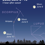 ماه پُرنور در حدود ساعت ۱۱ شب در نزدیکی صورت فلکی عقرب طلوع میکند. در ساعات سحرگاه چهارشنبه، ماه در جنوبشرقی دیده میشود، در حالی که ستارهی نارنجیرنگ «قلبالعقرب» در پایین سمت چپ آن میدرخشد.