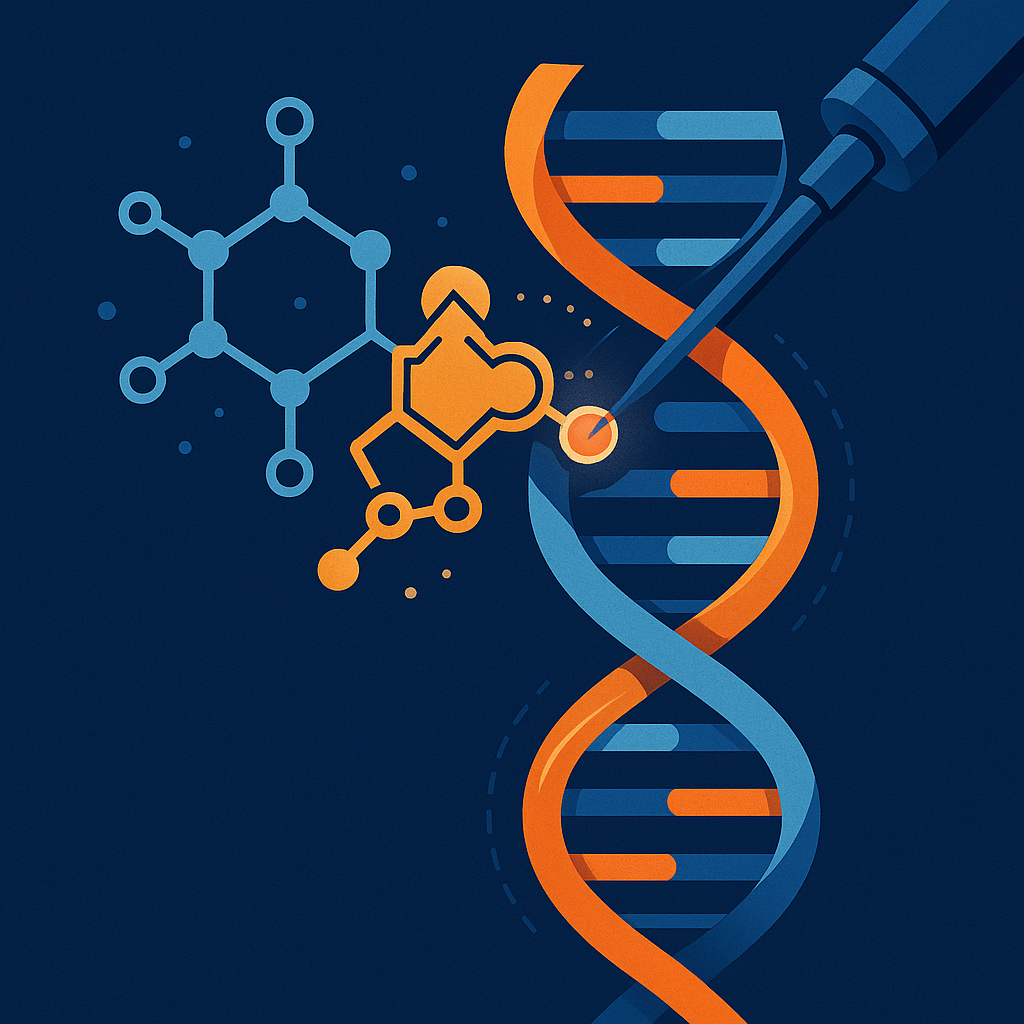 در این روش بهجای بریدن یا تعویض، یک «برچسب شیمیایی» (ADP-ریبوز) دقیقاً روی جایگاه هدف نصب میشود؛ مثل یک «یادداشت چسبان» که سامانهٔ ترمیم DNA را به بازنویسی هدفمند هدایت میکند.