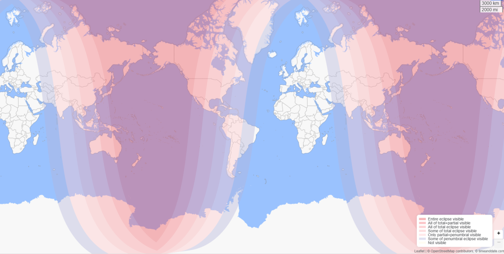 این وضعیت در ماهگرفتگیها رایج است؛ زیرا تنها از نیمکرهای که ماه در آن بالای افق باشد، میتوان پدیده را دید. این بار، نوبت به نیمکره غربی رسیده است.